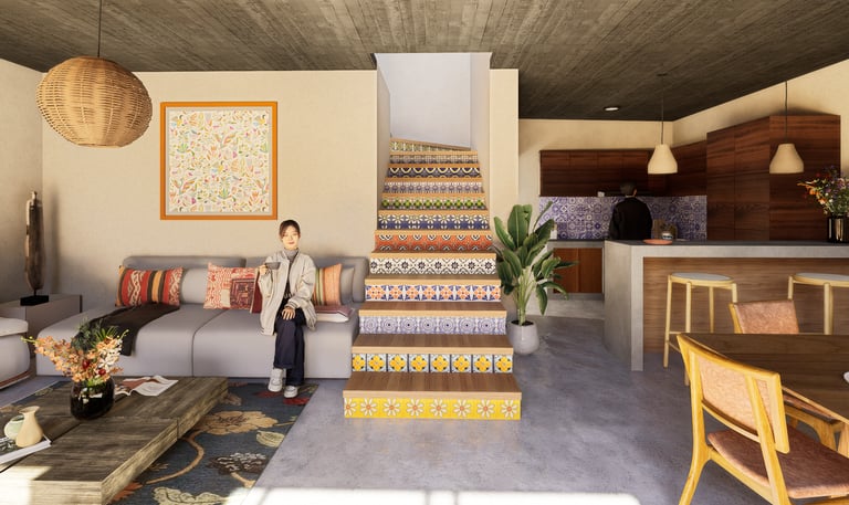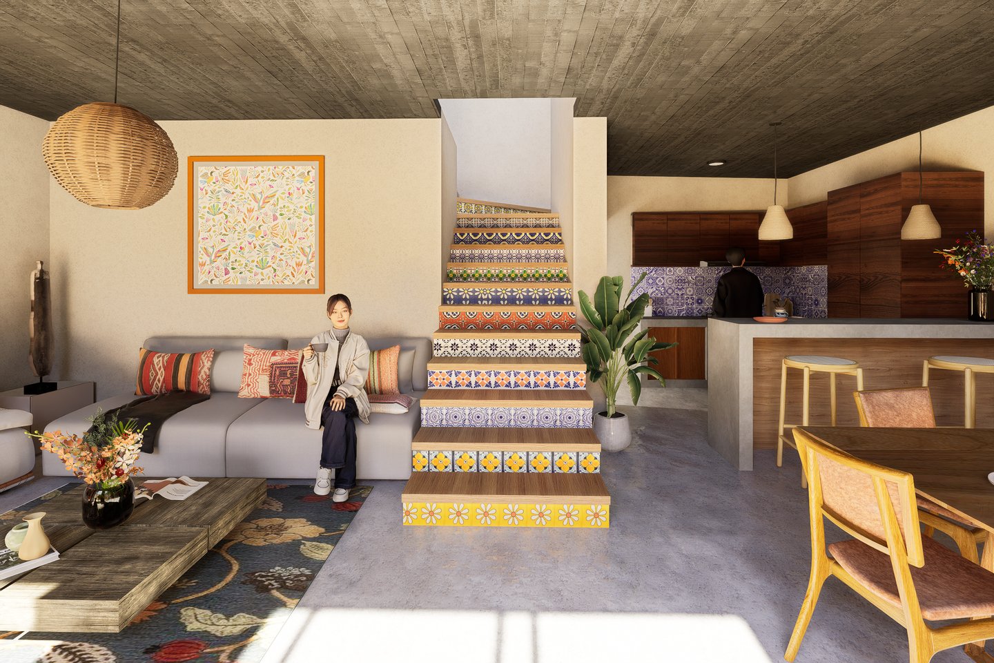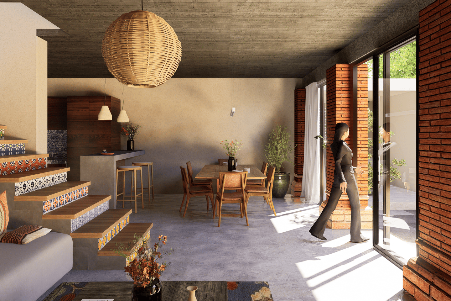 Esta casa de estilo contemporáneo fusiona líneas modernas con la calidez de materiales tradicionales de Oaxaca; diseñada para un artesano, sus espacios amplios reflejan funcionalidad y comodidad