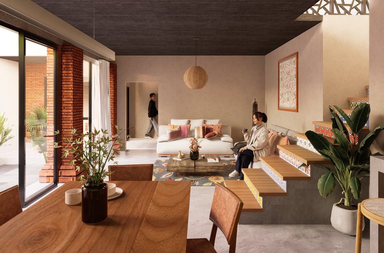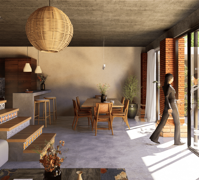 La abundante iluminación natural resalta texturas y detalles constructivos. Un hogar que honra la tradición mientras proyecta modernidad y apertura.