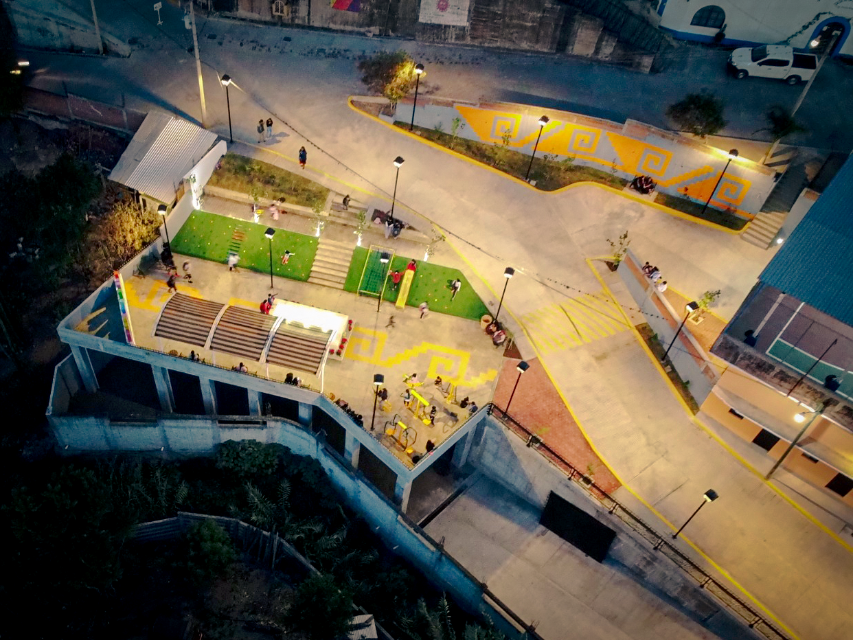 Concebido desde una visión comunitaria e inclusiva, el parque integra áreas de juego, descanso y encuentro que fomentan la interacción intergeneracional, el bienestar social y el fortalecimiento del tejido comunitario.
