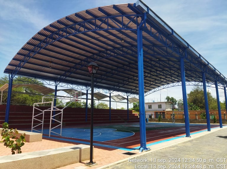 Mediante un proceso reañizado en tres etapas, las cuales contemplaron la rehabilitación de la cancha deportiva, construcción del techado, así como la construcción de un parque infantil, se realizó el proyecto del Multideportivo en la comunidad de Magdalena Ocotlán, Oaxaca.