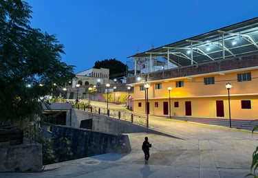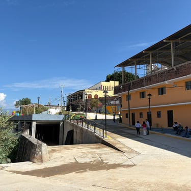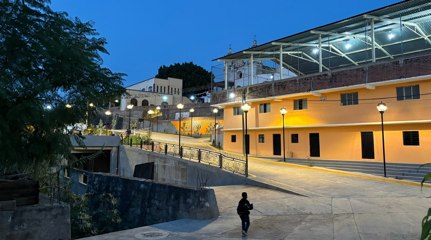 La plaza principal de San Miguel Suchixtepec se diseñó y construyó adaptándose a la accidentada geografía del lugar. Esta plaza unifica un complejo urbano conformado por miradores, calles, avenidas y espacios recreativos, brindándole identidad a la población a través de una infraestructura pública de calidad.