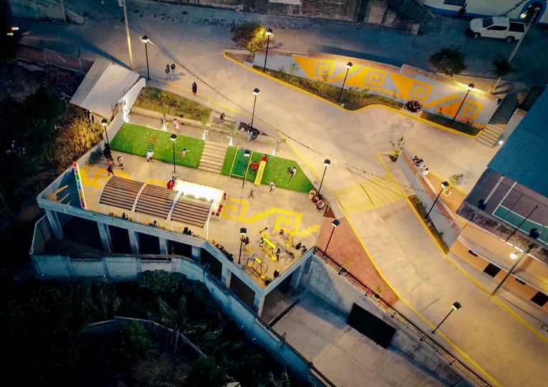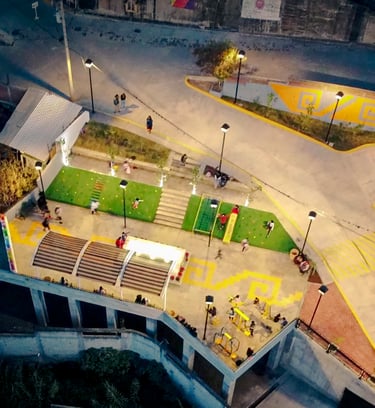 Concebido desde una visión comunitaria e inclusiva, el parque integra áreas de juego, descanso y encuentro que fomentan la interacción intergeneracional, el bienestar social y el fortalecimiento del tejido comunitario.